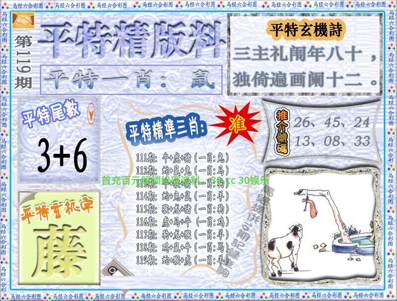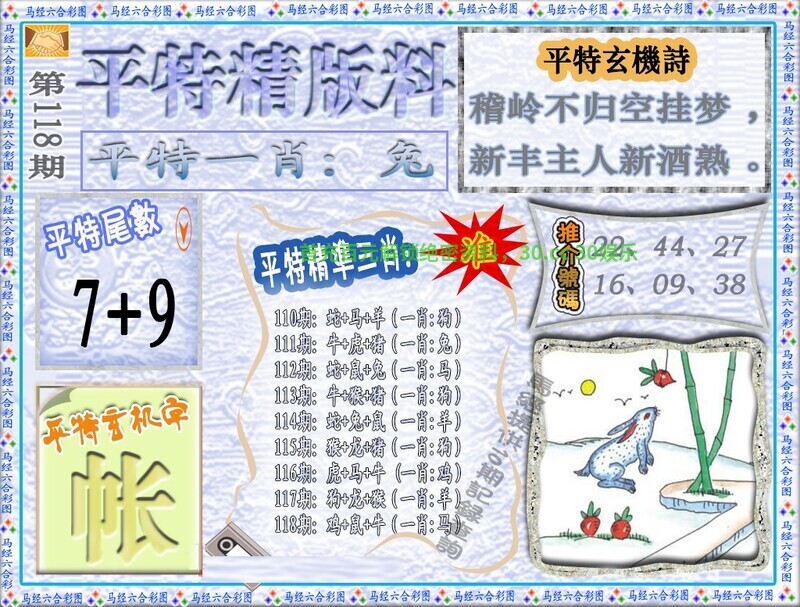 | 114期:必中六尾【123678】开:兔39错 |